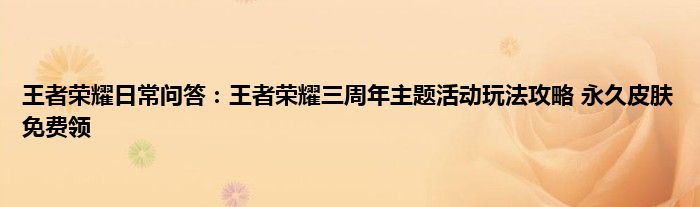 以上就是王者荣耀日常问答:王者荣耀三周年主题活动玩法攻略,永久皮肤免费领的推荐,相信通过王者荣耀日常问答:王者荣耀三周年主题活动玩法攻略,永久皮肤免费领这篇文章能帮到你,也欢迎对游戏很感兴趣小伙伴们一起来探讨。