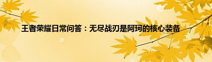 今天来聊聊关于王者荣耀日常问答:无尽战刃是阿珂的核心装备的文章,游戏是很多人的选择,但是游戏玩多了也会身心疲惫,现在就为大家来简单介绍下王者荣耀日常问答:无尽战刃是阿珂的核心装备,希望对各位小伙伴们有所帮助。