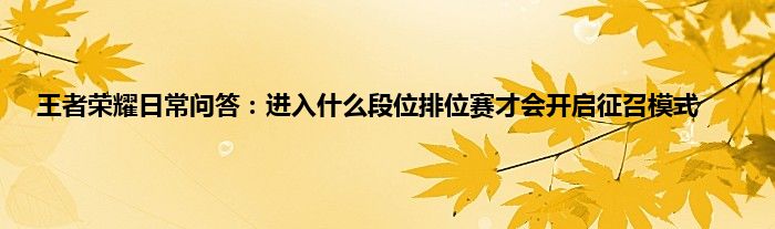 以上就是王者荣耀日常问答:进入什么段位排位赛才会开启征召模式的推荐,相信通过王者荣耀日常问答:进入什么段位排位赛才会开启征召模式这篇文章能帮到你,也欢迎对游戏很感兴趣小伙伴们一起来探讨。