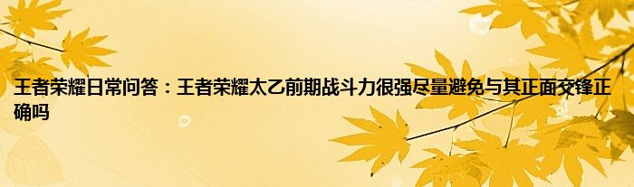 以上就是王者荣耀日常问答:王者荣耀太乙前期战斗力很强尽量避免与其正面交锋正确吗的推荐,相信通过王者荣耀日常问答:王者荣耀太乙前期战斗力很强尽量避免与其正面交锋正确吗这篇文章能帮到你,也欢迎对游戏很感兴趣小伙伴们一起来探讨。