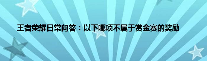 以上就是王者荣耀日常问答:以下哪项不属于赏金赛的奖励的推荐,相信通过王者荣耀日常问答:以下哪项不属于赏金赛的奖励这篇文章能帮到你,也欢迎对游戏很感兴趣小伙伴们一起来探讨。