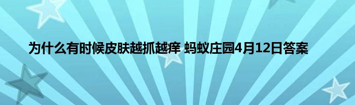 为什么有时候皮肤越抓越痒?蚂蚁庄园4月12日的问题正式发布,如果回答正确就可以领取奖励,可能很多的玩家还不太清晰具体的答案是什么,为了让大家都能领取到小鸡饲料,下面就是蚂蚁庄园小课堂4月12日的答案和答案解析。
