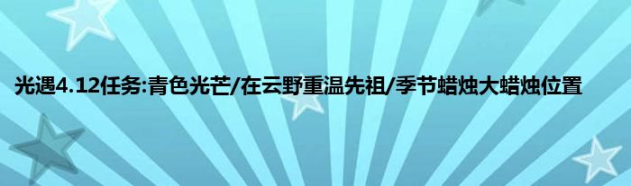 光遇4月12日任务更新,今天的几个每日任务主要就是收集青色光芒和在云野重温先祖的美好回顾了,招手和掀翻螃蟹应该都不难。光遇4.12任务位置在什么地方?今天的季节蜡烛和大蜡烛在哪里呢?这就来了解下吧。