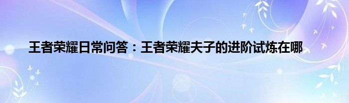 小编今天给各位玩家朋友们带来的是王者荣耀日常问答:王者荣耀夫子的进阶试炼在哪,有记得的玩家朋友吗?不记得也没有关系,小编已经帮助大家把王者荣耀日常问答:王者荣耀夫子的进阶试炼在哪找了出来,你只需要动动你的小手就可以轻松知道啦,快来瞧一瞧吧。