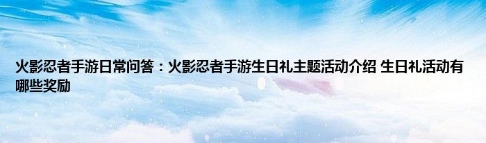 小编今天给各位玩家朋友们带来的是火影忍者手游日常问答:火影忍者手游生日礼主题活动介绍,生日礼活动有哪些奖励,有记得的玩家朋友吗?不记得也没有关系,小编已经帮助大家把火影忍者手游日常问答:火影忍者手游生日礼主题活动介绍,生日礼活动有哪些奖励找了出来,你只需要动动你的小手就可以轻松知道啦,快来瞧一瞧吧。