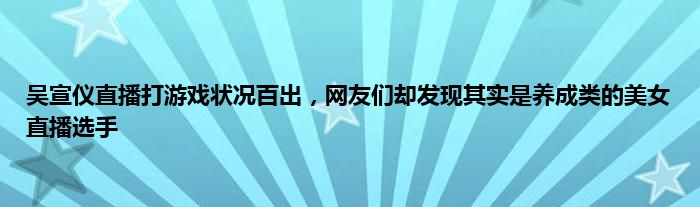 就在不久前吴宣仪就在某直播平台进行了一场和平精英游戏的直播,在这次直播中吴宣仪的表现真的欢乐多,在直播间里表现的像是一个网瘾少女,但是还能爆梗不断,被观看直播的网友们调侃打个游戏都是养成系。因为刚开始的时候吴宣仪是很菜的,妥妥的一个青铜守门员,而现在已经能够能用狙击枪一枪爆头了,难道女明星的游戏天赋都是那么恐惧如斯吗?