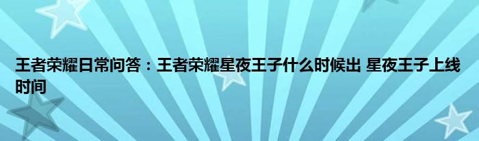 问:王者荣耀星夜王子什么时候出?