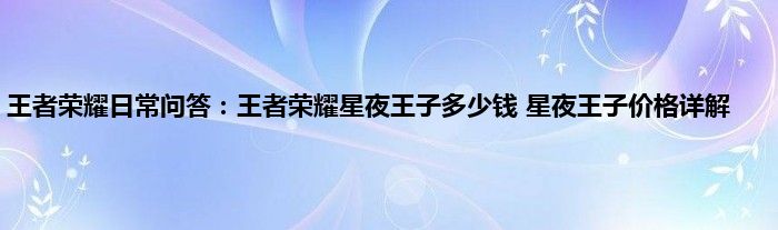 今天来聊聊关于王者荣耀日常问答:王者荣耀星夜王子多少钱,星夜王子价格详解的文章,游戏是很多人的选择,但是游戏玩多了也会身心疲惫,现在就为大家来简单介绍下王者荣耀日常问答:王者荣耀星夜王子多少钱,星夜王子价格详解,希望对各位小伙伴们有所帮助。