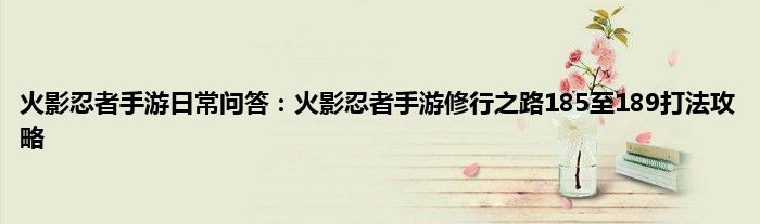 以上就是火影忍者手游日常问答:火影忍者手游修行之路185至189打法攻略的推荐,相信通过火影忍者手游日常问答:火影忍者手游修行之路185至189打法攻略这篇文章能帮到你,也欢迎对游戏很感兴趣小伙伴们一起来探讨。