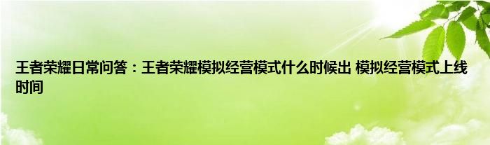 答:王者荣耀模拟经营模式目前还处于爆料阶段,具体上线时间还未公布,大家可以关注下小皮手游专区。