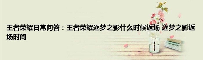 小编今天给各位玩家朋友们带来的是王者荣耀日常问答:王者荣耀逐梦之影什么时候返场,逐梦之影返场时间,有记得的玩家朋友吗?不记得也没有关系,小编已经帮助大家把王者荣耀日常问答:王者荣耀逐梦之影什么时候返场,逐梦之影返场时间找了出来,你只需要动动你的小手就可以轻松知道啦,快来瞧一瞧吧。