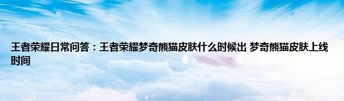 问:王者荣耀梦奇熊猫皮肤什么时候出?