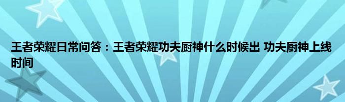 小编今天给各位玩家朋友们带来的是王者荣耀日常问答:王者荣耀功夫厨神什么时候出,功夫厨神上线时间,有记得的玩家朋友吗?不记得也没有关系,小编已经帮助大家把王者荣耀日常问答:王者荣耀功夫厨神什么时候出,功夫厨神上线时间找了出来,你只需要动动你的小手就可以轻松知道啦,快来瞧一瞧吧。