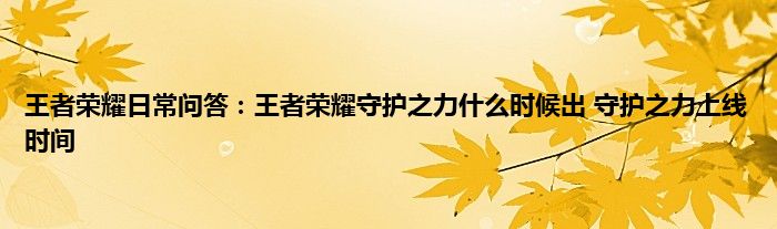 以上就是王者荣耀日常问答:王者荣耀守护之力什么时候出,守护之力上线时间的推荐,相信通过王者荣耀日常问答:王者荣耀守护之力什么时候出,守护之力上线时间这篇文章能帮到你,也欢迎对游戏很感兴趣小伙伴们一起来探讨。