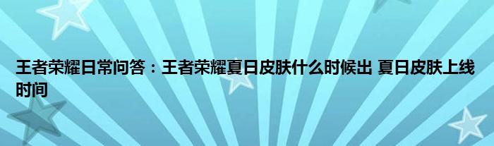 问:王者荣耀夏日皮肤什么时候出?