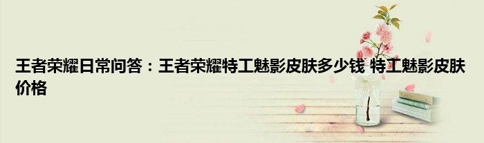 今天来聊聊关于王者荣耀日常问答:王者荣耀特工魅影皮肤多少钱,特工魅影皮肤价格的文章,游戏是很多人的选择,但是游戏玩多了也会身心疲惫,现在就为大家来简单介绍下王者荣耀日常问答:王者荣耀特工魅影皮肤多少钱,特工魅影皮肤价格,希望对各位小伙伴们有所帮助。