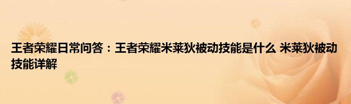 以上就是王者荣耀日常问答:王者荣耀米莱狄被动技能是什么,米莱狄被动技能详解的推荐,相信通过王者荣耀日常问答:王者荣耀米莱狄被动技能是什么,米莱狄被动技能详解这篇文章能帮到你,也欢迎对游戏很感兴趣小伙伴们一起来探讨。