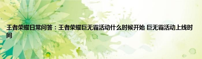 今天来聊聊关于王者荣耀日常问答:王者荣耀巨无霸活动什么时候开始,巨无霸活动上线时间的文章,游戏是很多人的选择,但是游戏玩多了也会身心疲惫,现在就为大家来简单介绍下王者荣耀日常问答:王者荣耀巨无霸活动什么时候开始,巨无霸活动上线时间,希望对各位小伙伴们有所帮助。