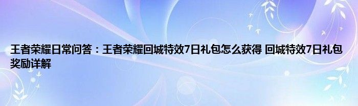 问:王者荣耀回城特效7日礼包怎么获得?奖励是什么?