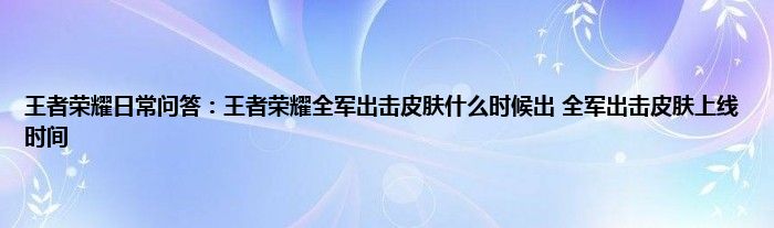今天来聊聊关于王者荣耀日常问答:王者荣耀全军出击皮肤什么时候出,全军出击皮肤上线时间的文章,游戏是很多人的选择,但是游戏玩多了也会身心疲惫,现在就为大家来简单介绍下王者荣耀日常问答:王者荣耀全军出击皮肤什么时候出,全军出击皮肤上线时间,希望对各位小伙伴们有所帮助。