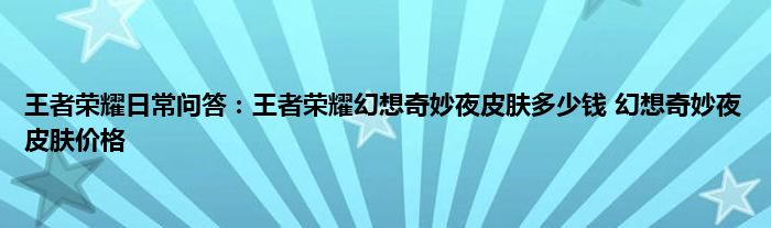 以上就是王者荣耀日常问答:王者荣耀幻想奇妙夜皮肤多少钱,幻想奇妙夜皮肤价格的推荐,相信通过王者荣耀日常问答:王者荣耀幻想奇妙夜皮肤多少钱,幻想奇妙夜皮肤价格这篇文章能帮到你,也欢迎对游戏很感兴趣小伙伴们一起来探讨。