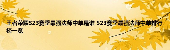 王者荣耀S23赛季已经于4月8日更新完毕,其中对英雄和装备进行了改动,很多玩家现在摸不清版本强势法师中单是谁,版本强势法师中单能帮助玩家在新赛季中快速上分,因此很多玩家想知道王者荣耀S23赛季最强法师中单是谁?蚕豆小编为您带来王者荣耀S23赛季最强法师中单排行榜一览