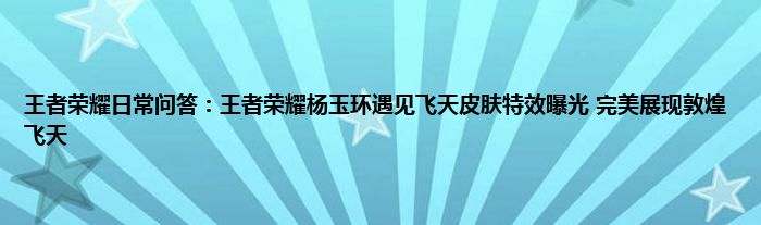 小编今天给各位玩家朋友们带来的是王者荣耀日常问答:王者荣耀杨玉环遇见飞天皮肤特效曝光,完美展现敦煌飞天,有记得的玩家朋友吗?不记得也没有关系,小编已经帮助大家把王者荣耀日常问答:王者荣耀杨玉环遇见飞天皮肤特效曝光,完美展现敦煌飞天找了出来,你只需要动动你的小手就可以轻松知道啦,快来瞧一瞧吧。