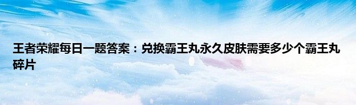小编今天给各位玩家朋友们带来的是王者荣耀每日一题答案:兑换霸王丸永久皮肤需要多少个霸王丸碎片,有记得的玩家朋友吗?不记得也没有关系,小编已经帮助大家把王者荣耀每日一题答案:兑换霸王丸永久皮肤需要多少个霸王丸碎片找了出来,你只需要动动你的小手就可以轻松知道啦,快来瞧一瞧吧。