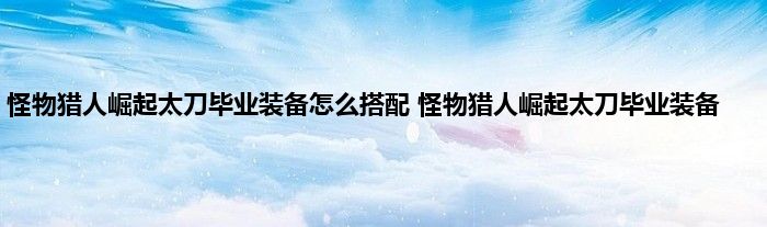 怪物猎人崛起太刀毕业装备怎么搭配?怪物猎人崛起已经发售了一段时间了,这次的怪物猎人崛起的配装中,太刀是最多玩家想要知道的,而太刀的配装思路也和上个版本不太一样,新的太刀应该怎么玩呢?下面就带来了具体的太刀搭配攻略,希翼大家喜欢。