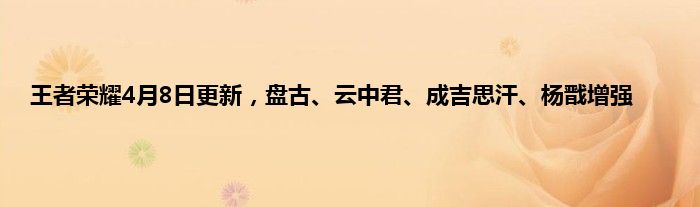 王者荣耀4月8日更,盘古、云中君、成吉思汗、杨戬增强