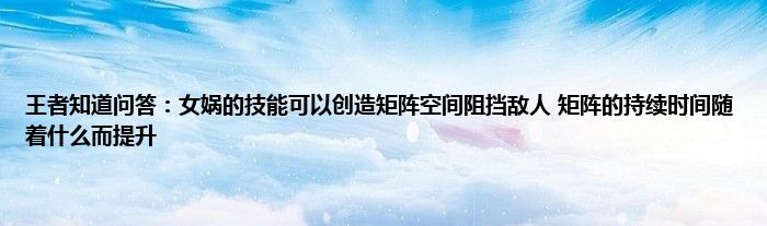 问:女娲的技能可以创造矩阵空间阻挡敌人,矩阵的持续时间随着什么而提升?