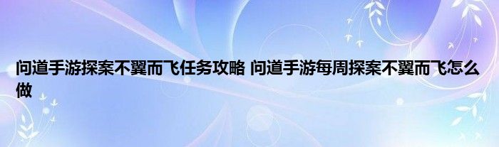 问道手游探案不翼而飞任务攻略。问道手游每周都有一个探案的任务,完成任务后可以获得相应的奖励,本周探案任务叫做不翼而飞,任务比较复杂,步骤很多,不少玩家不知道任务怎么做,下面就来跟着小编一起来看一下具体的攻略。