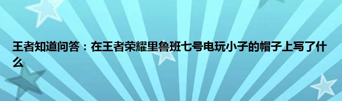 今天来聊聊关于王者知道问答:在王者荣耀里鲁班七号电玩小子的帽子上写了什么的文章,游戏是很多人的选择,但是游戏玩多了也会身心疲惫,现在就为大家来简单介绍下王者知道问答:在王者荣耀里鲁班七号电玩小子的帽子上写了什么,希望对各位小伙伴们有所帮助。