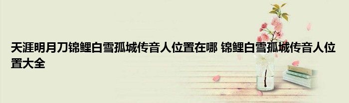 天涯明月刀手游锦鲤白雪孤城传音人位置在哪?在天涯明月刀的手游中,锦鲤白雪孤城传音人有很多玩家没有找到他的位置,很多玩家都迫不及待的想知道锦鲤白雪孤城传音人位置在哪里,接下来蚕豆小编就为大家带来锦鲤白雪孤城传音人的位置一览吧。