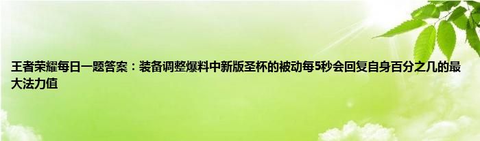 今天来聊聊关于王者荣耀每日一题答案:装备调整爆料中新版圣杯的被动每5秒会回复自身百分之几的最大法力值的文章,游戏是很多人的选择,但是游戏玩多了也会身心疲惫,现在就为大家来简单介绍下王者荣耀每日一题答案:装备调整爆料中新版圣杯的被动每5秒会回复自身百分之几的最大法力值,希望对各位小伙伴们有所帮助。