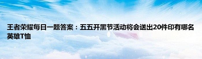 今天来聊聊关于王者荣耀每日一题答案:五五开黑节活动将会送出20件印有哪名英雄T恤的文章,游戏是很多人的选择,但是游戏玩多了也会身心疲惫,现在就为大家来简单介绍下王者荣耀每日一题答案:五五开黑节活动将会送出20件印有哪名英雄T恤,希望对各位小伙伴们有所帮助。