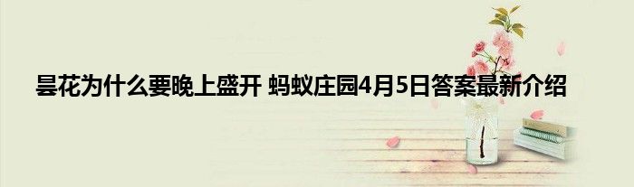 蚂蚁庄园小课堂玩法非常的游戏,在这里你还能学习到一些知识,并且里面每日都会给玩家带来全新的问题,4月5日最新的问题就是昙花为什么要晚上盛开?很多玩家不知道答案是什么,那下面就让小编给玩家们带来4月5日最新答案的介绍,希翼能够给需要的玩家们带来一定的帮助。