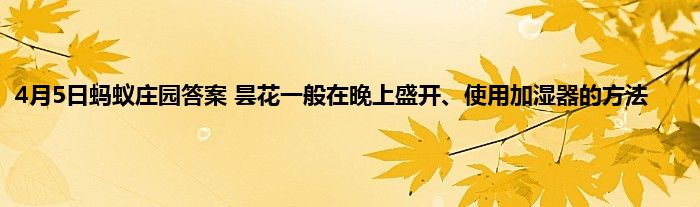2021年4月5日蚂蚁庄园答案是什么?4月5日蚂蚁庄园的答案很多的玩家都不清晰,这两个问题有:昙花一般在晚上盛开,是因为要?下面使用加湿器的方法,值得推举的是?下面小编给大家介绍一下具体的答案和解析,一起来看看吧。