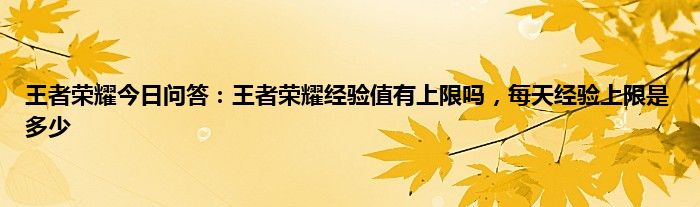 王者荣耀今日问答:王者荣耀经验值有上限吗,每天经验上限是多少