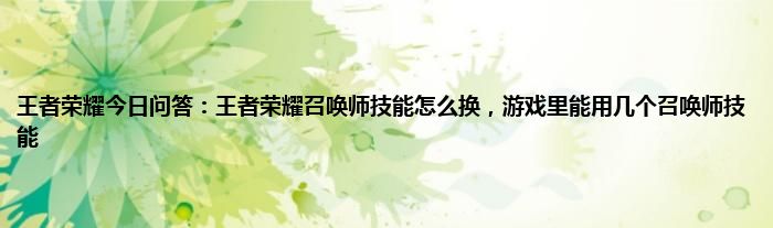 以上就是王者荣耀今日问答:王者荣耀召唤师技能怎么换,游戏里能用几个召唤师技能的推荐,相信通过王者荣耀今日问答:王者荣耀召唤师技能怎么换,游戏里能用几个召唤师技能这篇文章能帮到你,也欢迎对游戏很感兴趣小伙伴们一起来探讨。