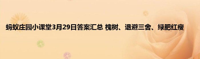 蚂蚁庄园小课堂3月29日答案汇总 槐树、退避三舍、绿肥红瘦