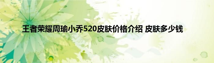 王者荣耀在5月20日会上线一套520的情侣皮肤,那就是周瑜和小乔的哦,很多玩家对于这套情侣皮肤已经期待已久了,那么这两个情侣皮肤的价格是多少呢?这也是玩家比较关注的,那下面就让小编给玩家带来这两个皮肤的介绍,包括价格的分析,希翼能够给玩家们带来一些帮助。