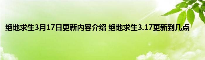 绝地求生3.17更新到几点?绝地求生今天有更新,3月17日10:00进行了一次正式服不停机的维护的,很多玩家想知道更新了什么内容,要维护到几点,下面就来跟着小编一起了解一下吧,希望能帮到各位。