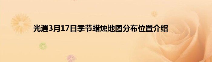 感谢你在百忙之中抽出时间阅读光遇3月17日季节蜡烛地图分布位置介绍这篇文章。你觉得今天光遇3月17日季节蜡烛地图分布位置介绍话题怎么样?关于光遇3月17日季节蜡烛地图分布位置介绍这篇文章的任何评论都可以告诉我。你的每一个建议都是对小编辑的肯定和鼓励。小编明天会继续给你带来更多的好内容。我希望你不要错过。感谢支持哟!
