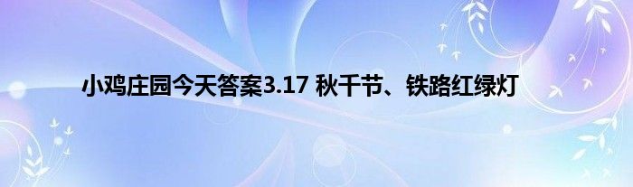 我国古代有“秋千节”,这天还是什么节日?铁路也有“红绿灯”,绿色信号灯表示这段轨道?这是蚂蚁庄园3月17日的题目,那么,小鸡庄园3.17答案是什么?在支付宝中,我们可以通过蚂蚁庄园回答每日问题,答对后可以获取饲料,我们可以使用饲料喂养小鸡,那么小鸡庄园3.17的答案是什么,下面一起来看看吧。