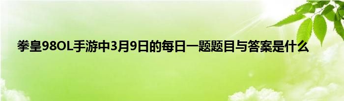 以上就是拳皇98OL手游中3月9日的每日一题题目与答案是什么的推荐,相信通过拳皇98OL手游中3月9日的每日一题题目与答案是什么这篇文章能帮到你,也欢迎对游戏很感兴趣小伙伴们一起来探讨。