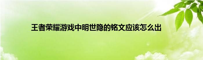 今天弟哥来聊聊一篇关于王者荣耀游戏中明世隐的铭文应该怎么出的文章,游戏是很多人的选择,但是游戏玩多了也会身心疲惫,现在就为大家来简单介绍下王者荣耀游戏中明世隐的铭文应该怎么出,希望对各位小伙伴们有所帮助。