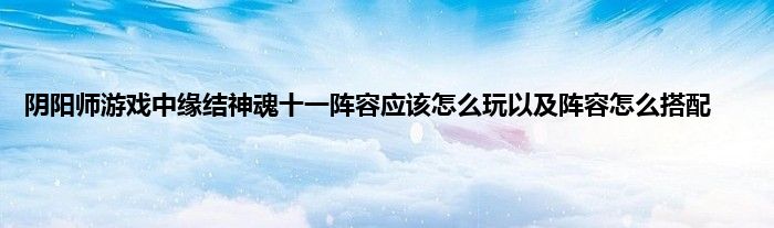 今天弟哥来聊聊一篇关于阴阳师游戏中缘结神魂十一阵容应该怎么玩以及阵容怎么搭配的文章,游戏是很多人的选择,但是游戏玩多了也会身心疲惫,现在就为大家来简单介绍下阴阳师游戏中缘结神魂十一阵容应该怎么玩以及阵容怎么搭配,希望对各位小伙伴们有所帮助。