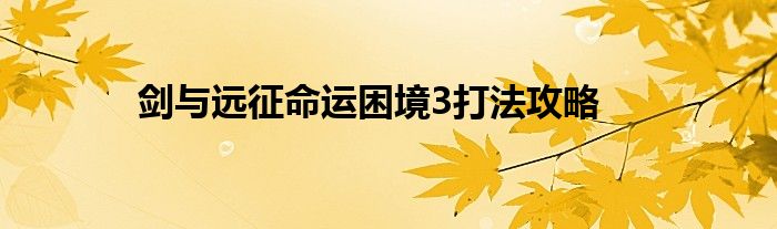 剑与远征命运困境3怎么过