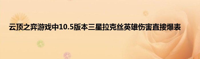 今天弟哥来聊聊一篇关于云顶之弈游戏中10.5版本三星拉克丝英雄伤害直接爆表的文章,游戏是很多人的选择,但是游戏玩多了也会身心疲惫,现在就为大家来简单介绍下云顶之弈游戏中10.5版本三星拉克丝英雄伤害直接爆表,希望对各位小伙伴们有所帮助。